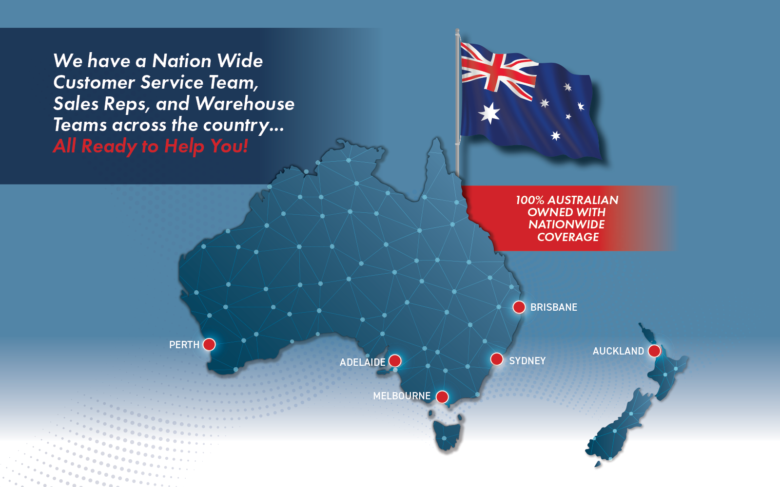 We have just under 5,000 square meters of warehouse space across Australia, all packed to the rafters and with up to date IT systems. We are able to supply orders to most of Australia and New Zealand overnight with logistics warehouses located in Sydney, Adelaide, Perth and Auckland.