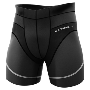 Due to the additional neoprene wrap around the upper thigh to support the groin area, some customers opt for one size up compared to their normal sizing.